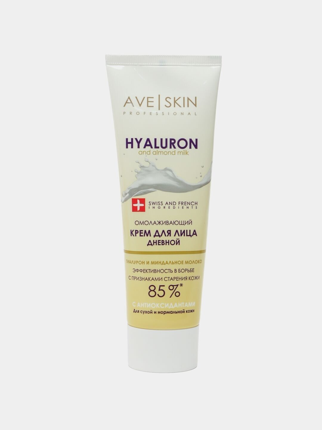 Gialuron kislotasi va bodom suti asosidagi yuz uchun yoshartiruvchi kun kremi quruq teri uchun kerakli oziqlanish va namlanishni ta'minlaydi, hujayraning chuqur yangilanishiga yordam beradi.